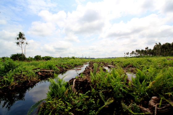 Unvorstellbar, dass hier noch vor weniger als dreißig Jahren dichter Urwald stand, der mit seinen meterdicken Urwaldriesen Tigern, Orang-Utans und dem Sumatra-Nashorn ein Zuhause bot. Heute sind all diese Tierarten akut vom Aussterben bedroht. Zusätzlich wirkt sich auch das Trockenlegen der weitläufigen indonesischen Moore für neue Plantagen verheerend auf den Klimawandel aus. Viele Böden in den Tiefebenen von Riau und Borneo bestehen aus meterdicken Moorböden, in denen über Jahrtausende Biomasse und damit CO2 gespeichert ist.